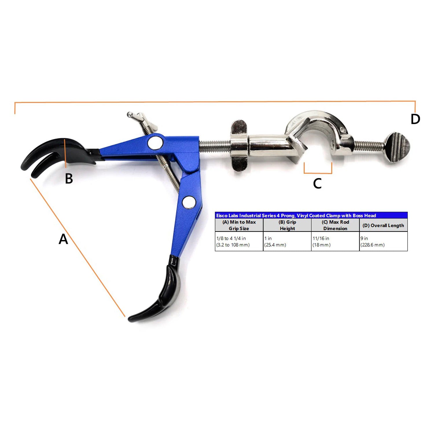4-Prong Vinyl Coated Clamp with Swivel Bosshead – 4.1" Max Opening, Heavy-Duty Zinc Alloy, Rust-Free Laboratory Clamp
