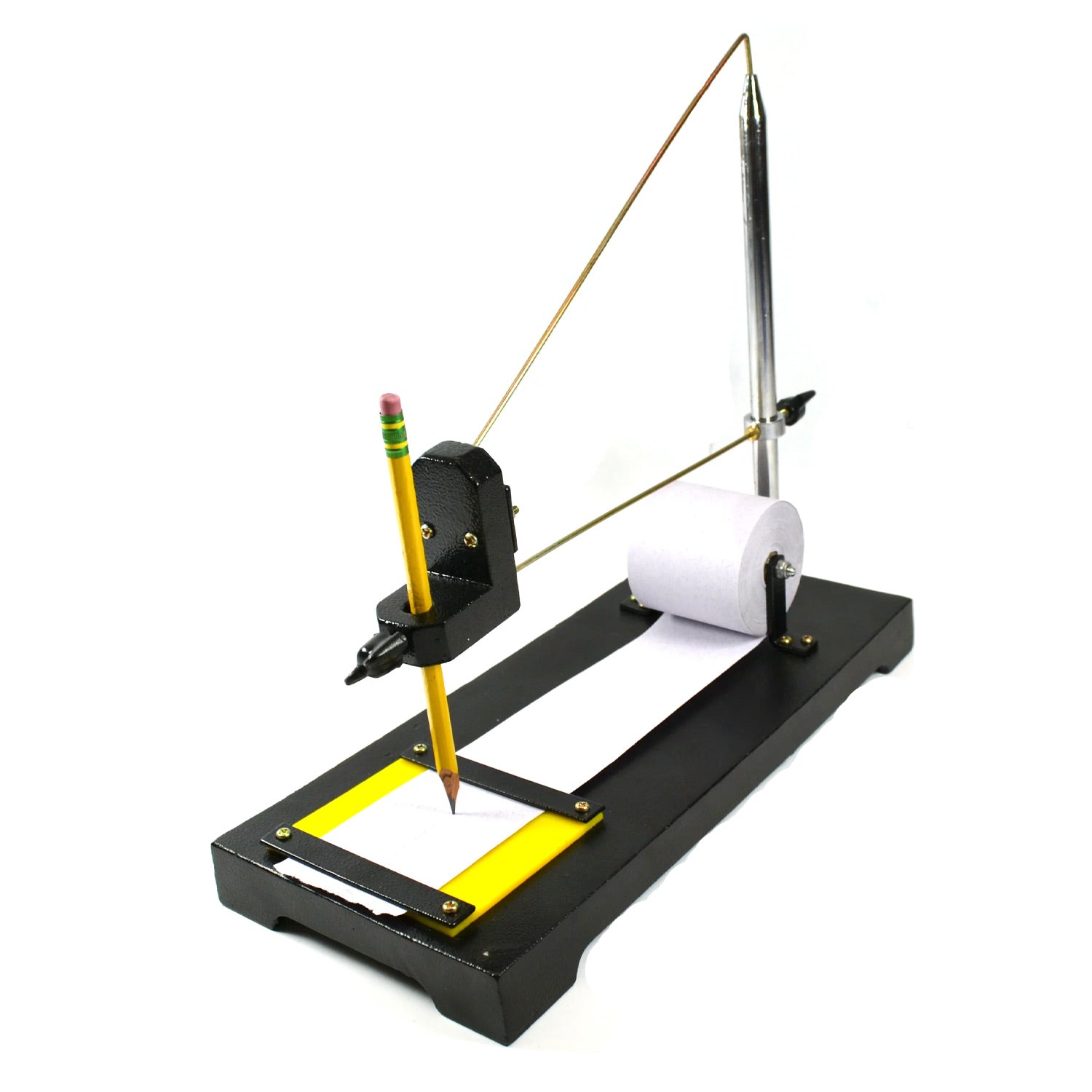Designed specifically for educational use, this seismograph model allows students to observe how seismic waves are recorded. By manually pulling the included roll of paper, movements such as jumping or tapping near the unit are captured as markings on the strip, simulating how real seismic activity is tracked.