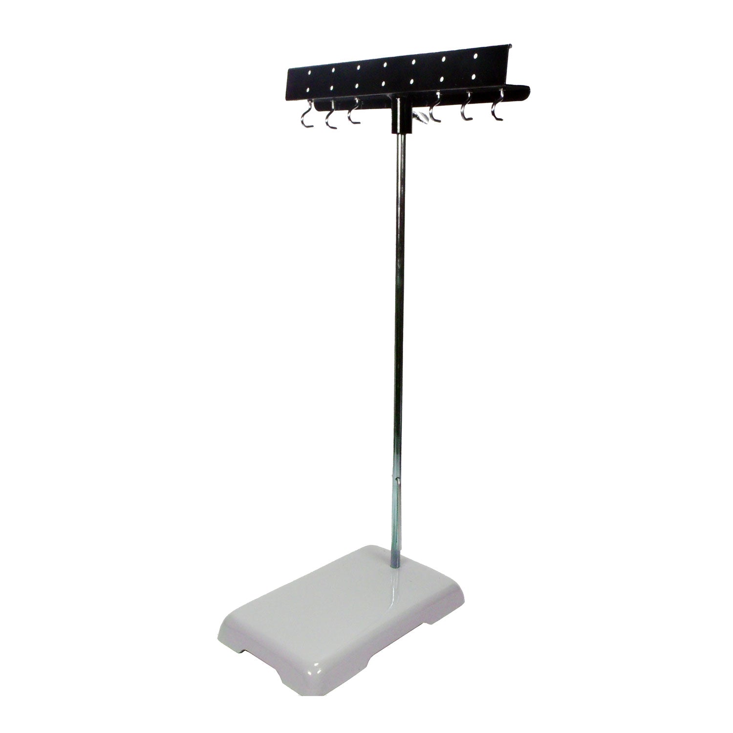 "extra_description": "The United Scientific® Connecting Cord Organizer with Stand provides a complete solution for keeping lab cords organized and accessible during lessons and experiments. This set includes the cord organizer plus a heavy-duty 5” x 8” cast iron base with a 20” support rod, offering stability and convenience right out of the box. The organizer features 14 precision holes for banana plug cords and 6 hooks for alligator clip wires, making it easy to keep cords tangle-free and ready to use. The stand’s durable construction ensures long-lasting classroom use, while the powder-coated finish provides a professional look and added durability. Ideal for physics and electricity demonstrations in schools and laboratories."